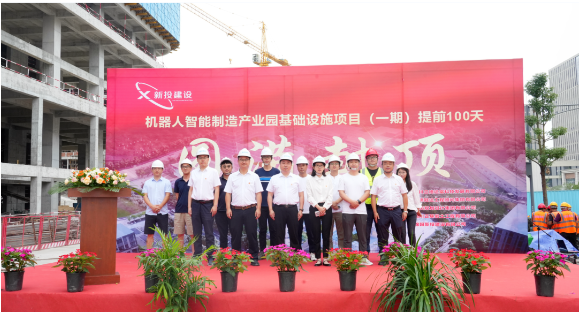 提前100天!機器人智能制造產(chǎn)業(yè)園基礎設施項目(A區(qū))完成封頂
